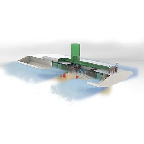 De vrijhangende inductie unit OKNV is een actieve hoge capaciteit unit en wordt toegepast in gebouwen waar geen verlaagde plafonds worden toegepast.